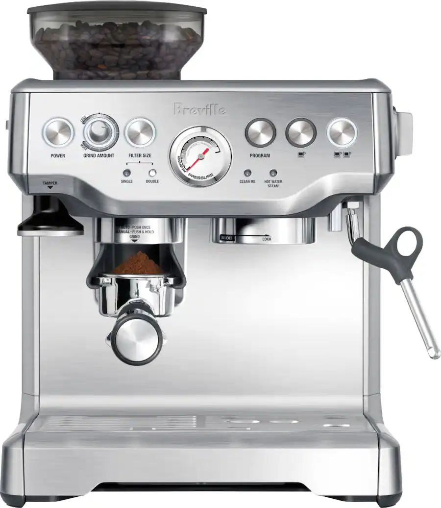 Breville The Barista Express BES870XL 25-Shot Espresso Maker:Need a pick-me up? Make espresso or an espresso-based beverage using this maker, which features a 15-bar Italian pump and 25-shot capacity for reliable performance. Low-pressure pre-infusion expands grinds gently to deliver even extraction.